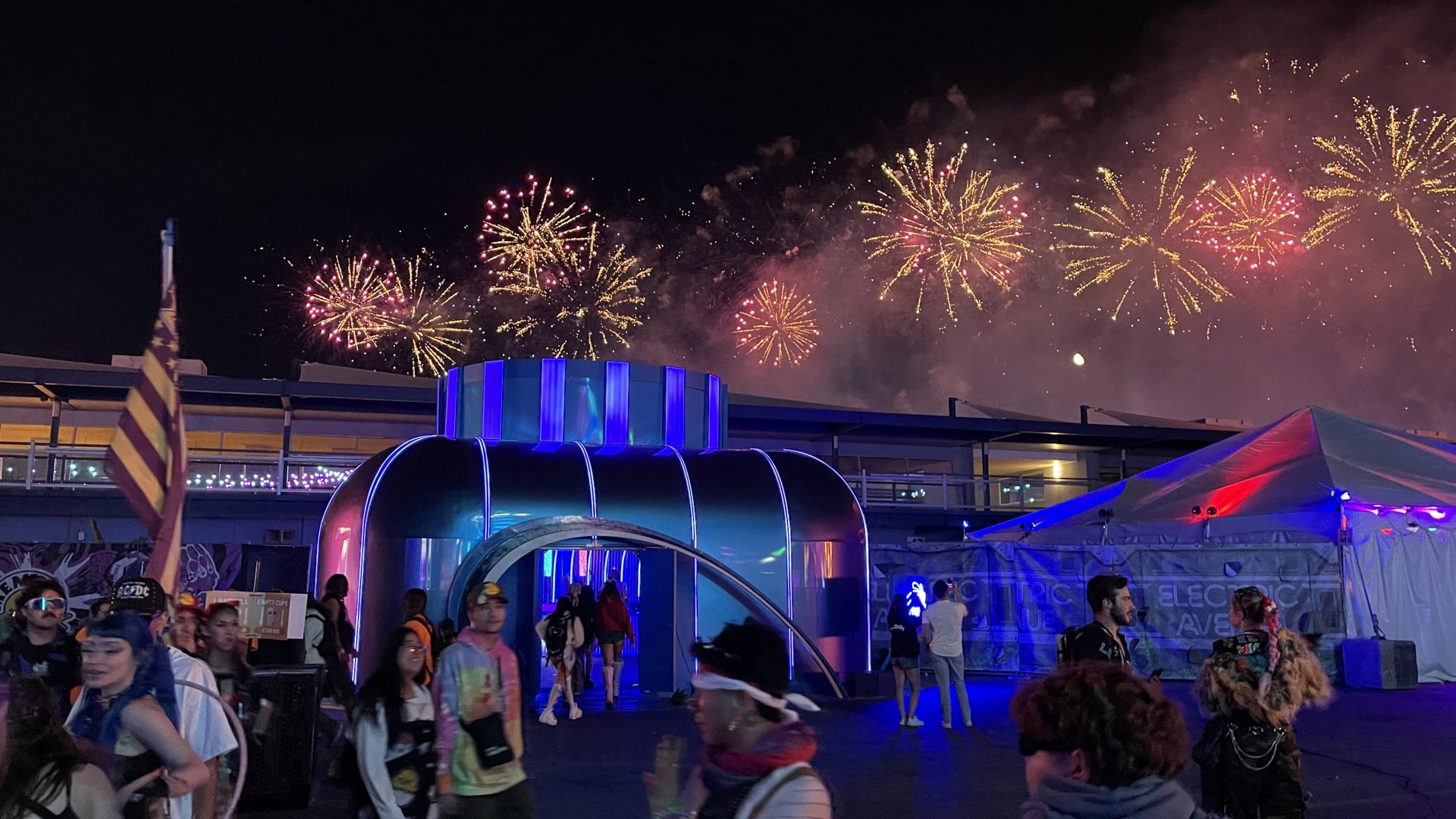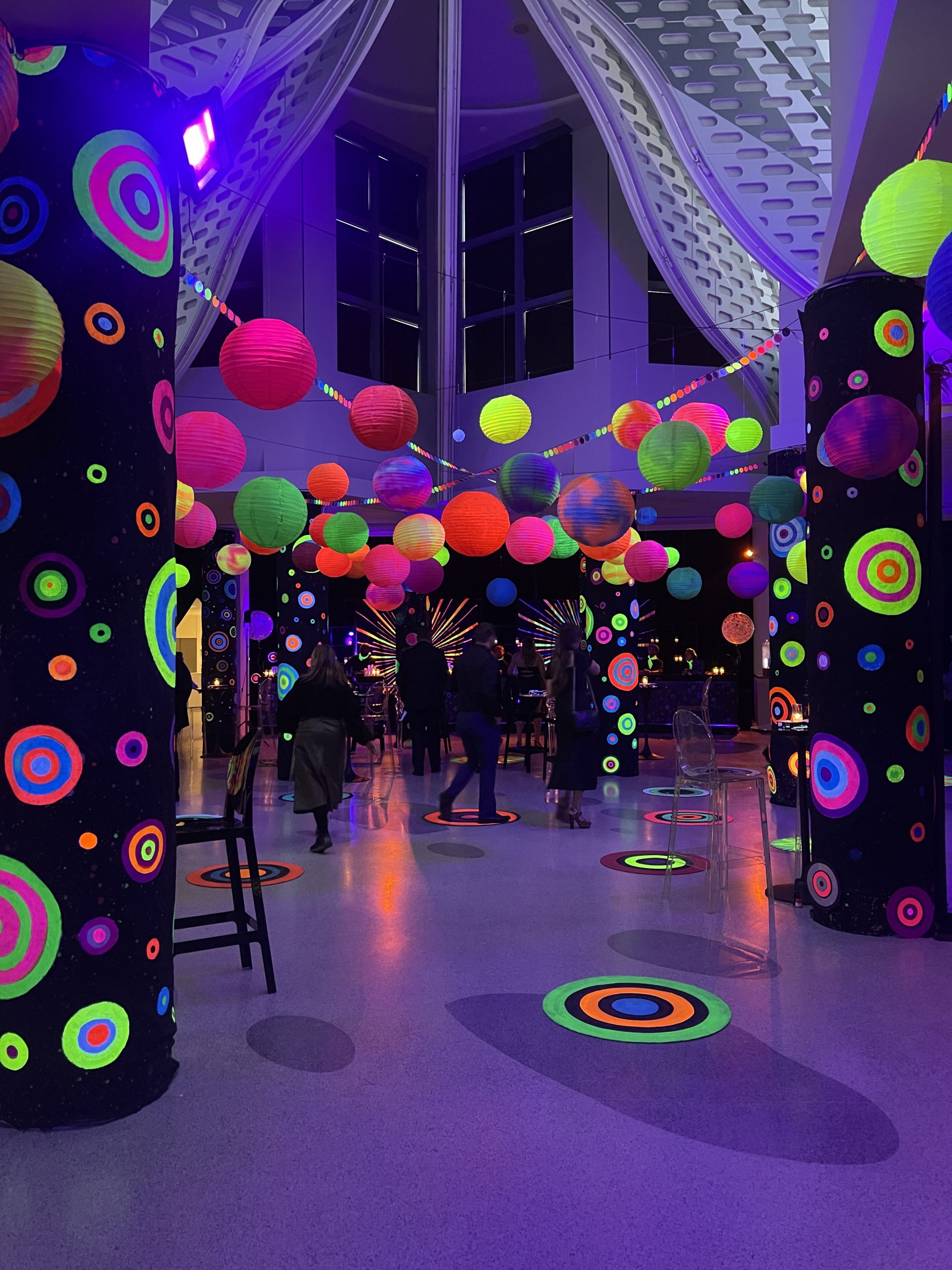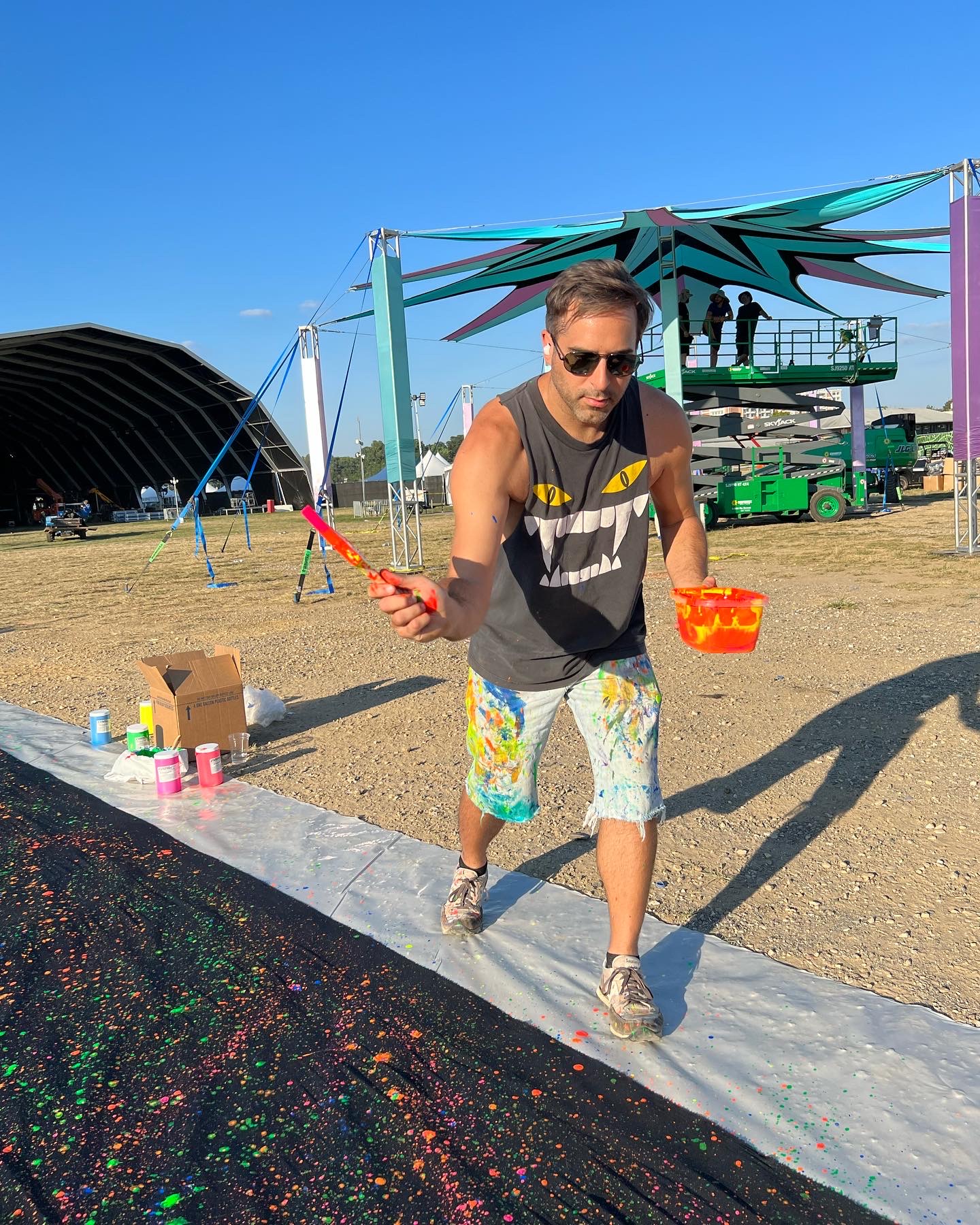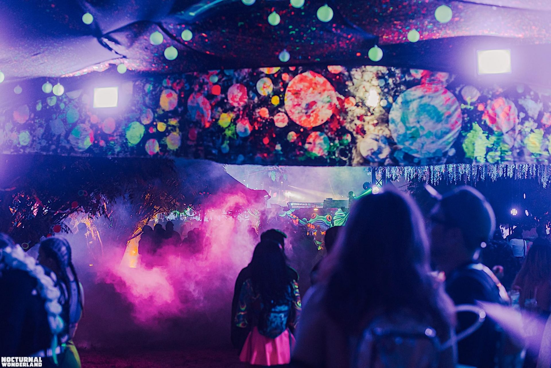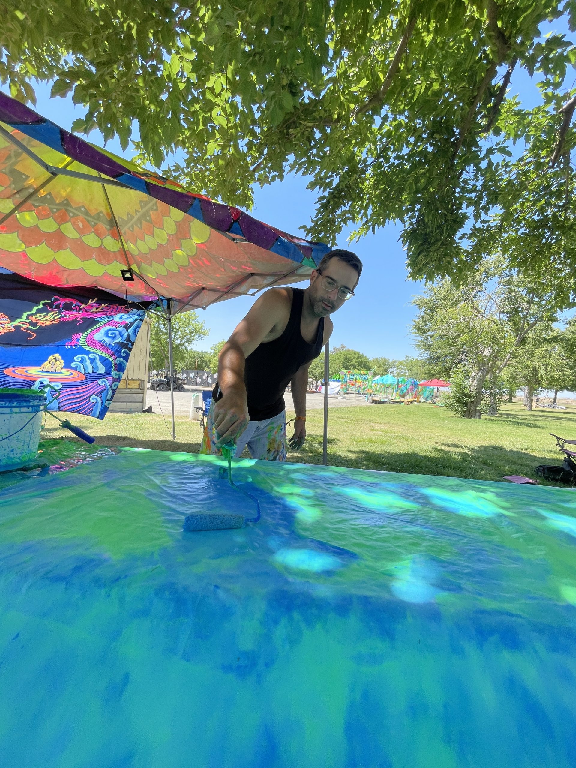 Immersive, hand‑painted environments created for Insomniac’s Countdown NYE, Nocturnal Wonderland, Moonrise Festival, Lost Lands Festival, Lightning in a Bottle, Sherman Library & Gardens’ Nights of 1000 Lights, a Fortune 500 tech company at their headquarters, and the Museum of Contemporary Art San Diego. These installations were experienced by tens of thousands of attendees across major festivals, with environments built for crowds ranging from 20,000 to over 60,000 people. The builds were full 3D blacklight installations, featuring UV‑reactive murals and sculptural elements designed to “lift” off the walls when viewed through 3D glasses, creating walk‑through dimensional worlds of color, depth, and atmospheric effects. My contributions spanned scenic painting, fabrication support, and on‑site installation, with occasional live bodypainting and performance elements integrated into the activation. (NDA‑restricted projects are listed without photos.)