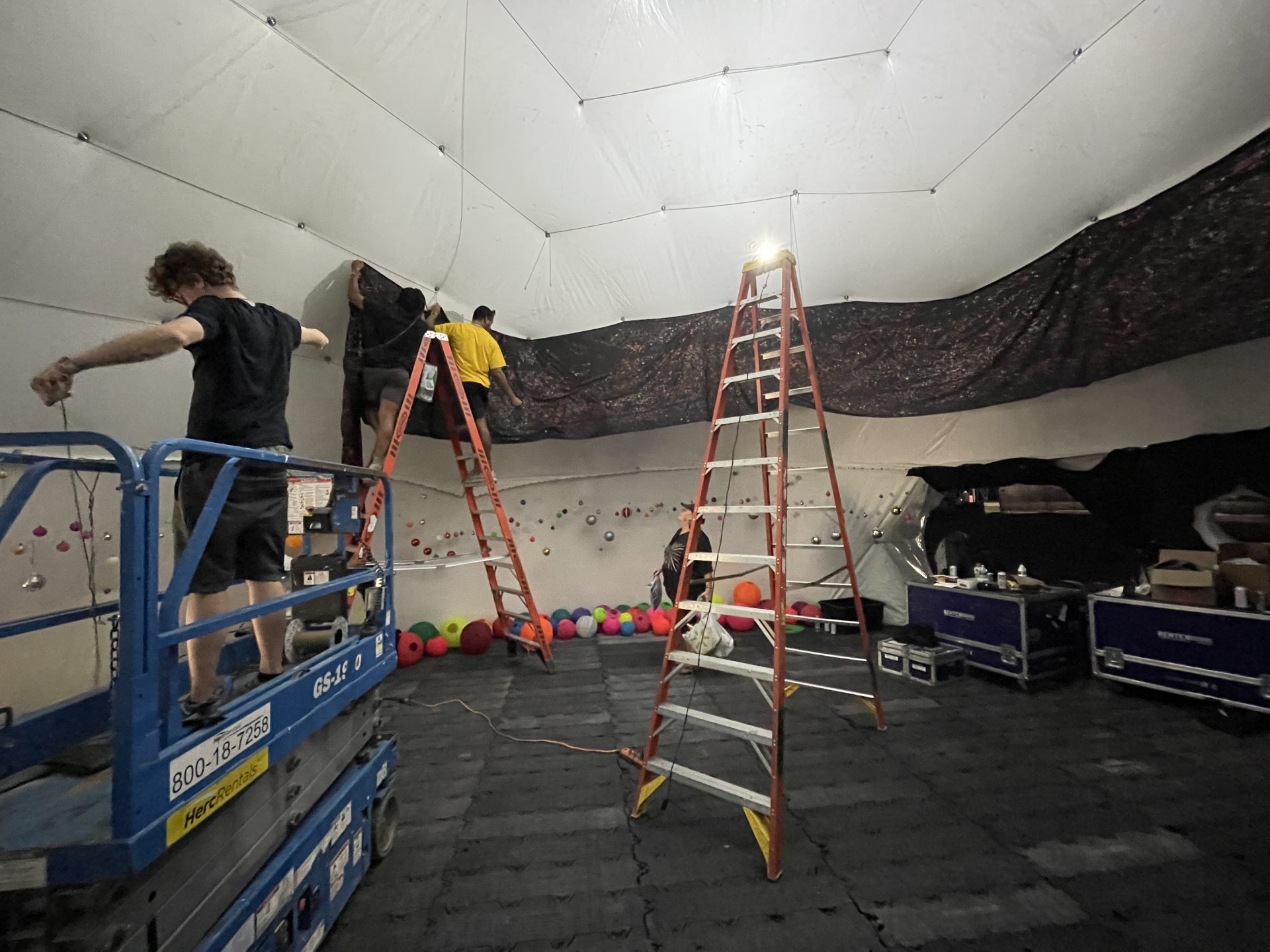Fabrication and production support for Electrolit’s large branded installation at Coachella and EDC Las Vegas. Assisted lead carpenters and fabricators throughout construction and worked on the on‑site build crew at Coachella. At EDC Las Vegas, I served as the sole on‑site Production Coordinator and Runner, working directly with the Production Manager and overseeing daily operations, crew support, and show‑time site management while she advanced logistics for the next event. The installation functioned as a large interactive bar/nightclub environment with a full DJ schedule and projection‑based interactive visual elements.